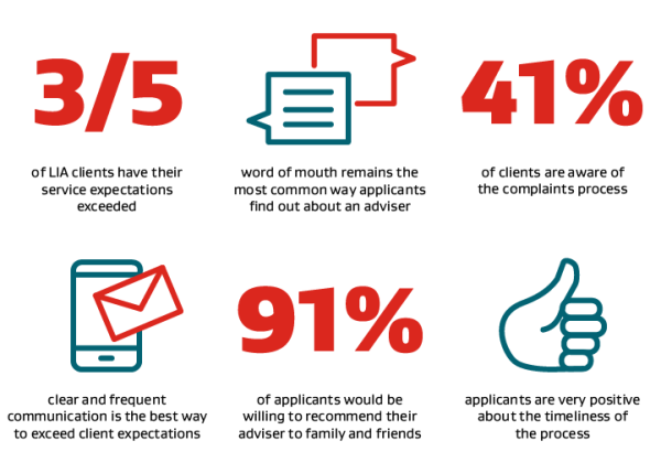 The 2022-2023 survey results show satisfaction with the service provided by licensed advisers remains high and stable. Applicants remain positive about the quality of service received from their adviser overall (89%), including 60% who are very satisfied. 5% express some level of dissatisfaction.